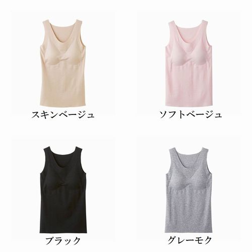 ●グンゼオリジナルの綿混素材の完全無縫製カップ付きタンクトップ 縫い糸を全く使わず、接着だけで仕上げる事で縫い糸による肌への負担を軽減。