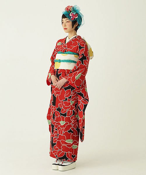 【レンタル】【2021年成人式 振袖レンタル】 「椿」梅成人式 振袖 レンタル 往復送料無料 女性 振袖セット 振袖フルセットレンタル 貸衣装 ふりふオリジナル ふりふレンタル振袖 ツバキ