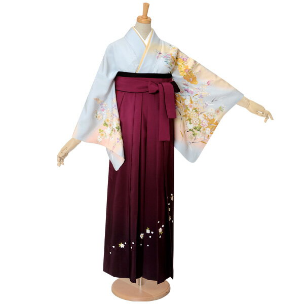) ●バスト:〜92cm 【着物寸法】 ●袖丈:49cm ●裄:67cm 【素材】正絹100% 【セット内容】 1) 振袖 2) 袴 3) 半幅帯 4) 重ね衿(伊達衿) 5) 草履・バッグ 6) 肌着(きものスリップ)7) 長襦袢(着物に合った色柄で、衿は刺繍を施した半衿付き) 8) コーリンベルト 9) 帯板 10) 衿芯 11) 腰紐5本 12) 伊達締め2本 13) 足袋(サービス品) 【レンタル期間】4泊5日(利用日3日届け、利用日翌日返却) 【HOT KEYWORD】袴 レンタル 先生 卒業式 謝恩会 教員 先生 教職員 卒業式袴 レンタル着物 レンタル袴 袴 女袴 シンプル袴 大人袴 袴セット 女性 女 レディース フルセット はかま 貸衣装 rental 卒園式 お稽古 発表会 習い事 先生袴カテゴリー 品番/商品名 HG872/青鼠色 雲取りに菊と花々 淡い青鼠色地色に、金彩で雲取りを表し、菊の花を中心に季節の草花を配した華やぎのあるお着物です。